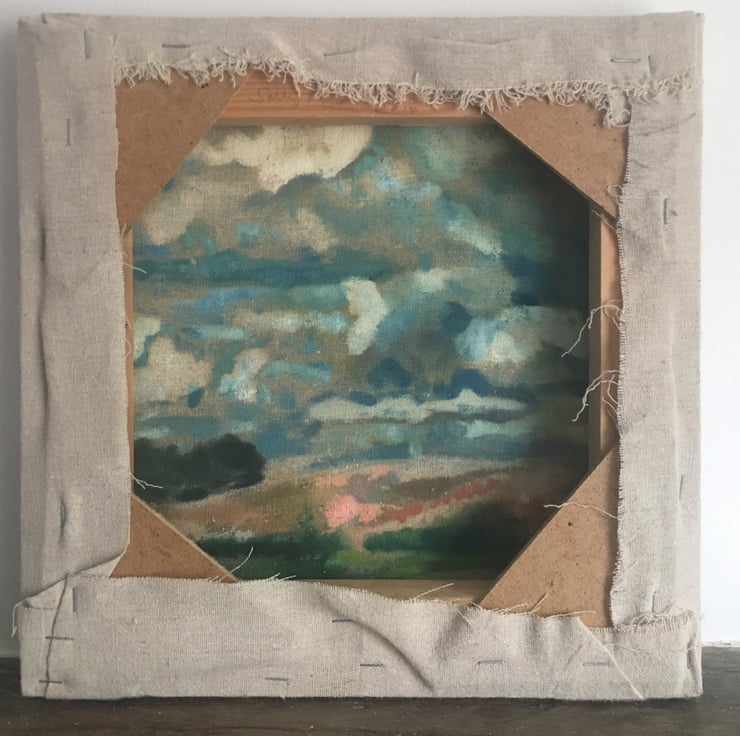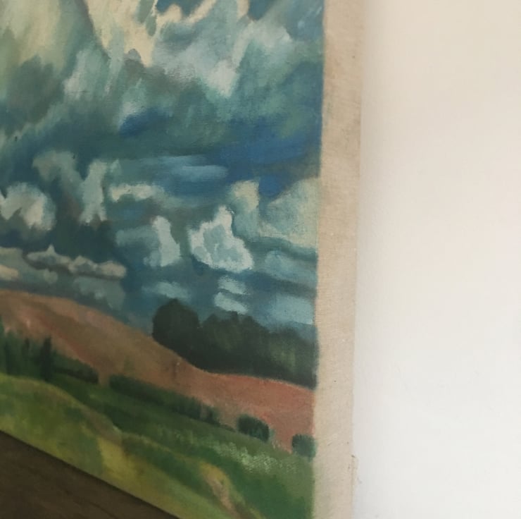 Oil painting on raw linen, stretched over handmade, wooden stretcher.
