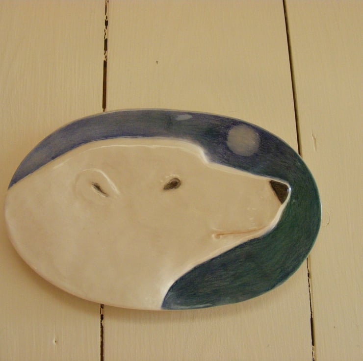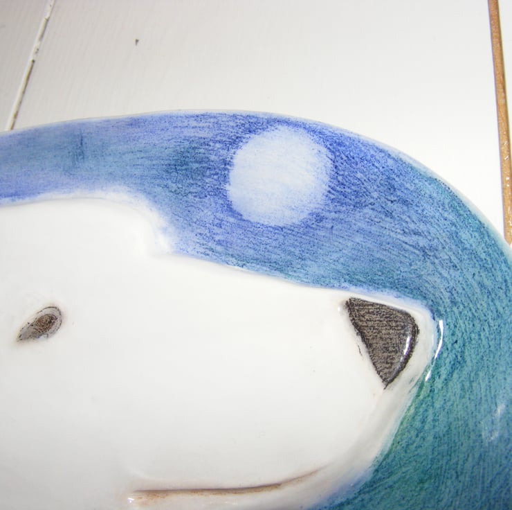 Bears are a part of my dreams and it is inevitable they turn up in my artwork too. I work intuitively with the clay, sometimes not knowing what I am going to create and this piece evolved this way. The Polar Moon bear has a wonderful tactile feel to it when brushed over with your hand.