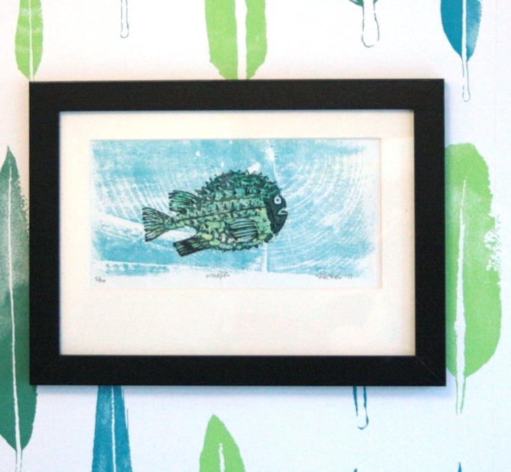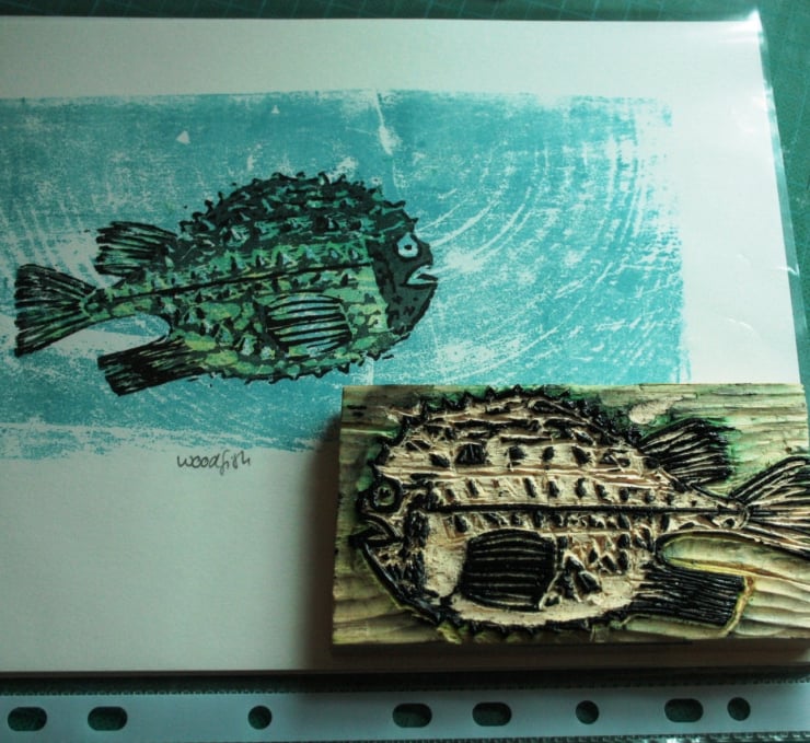 Fish are one of the motifs I just love to print. The texture of the wood used to make this print adds life to it.