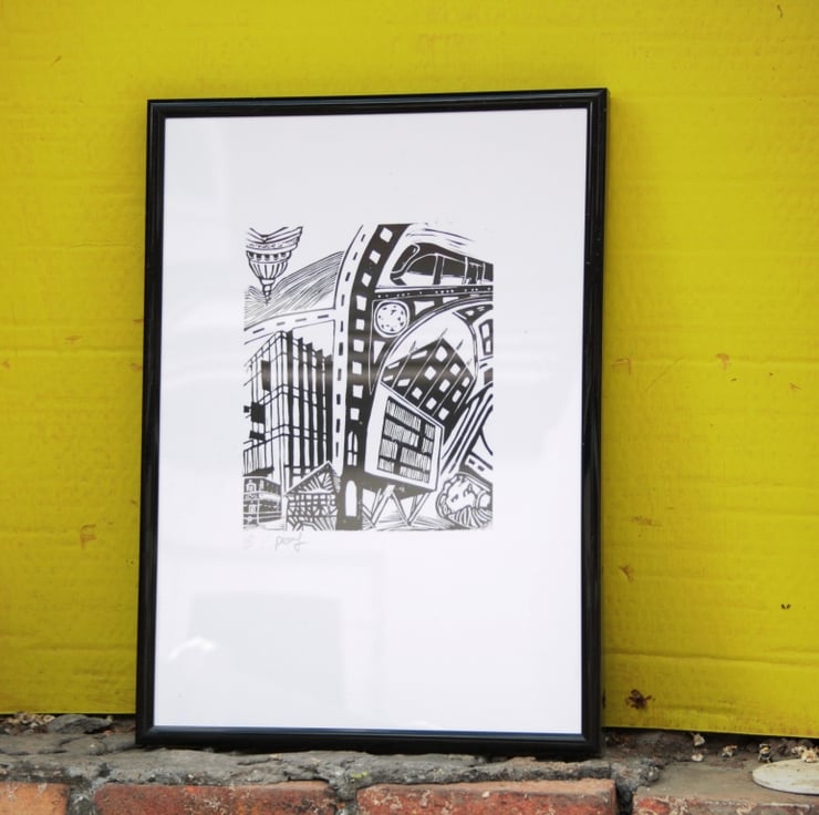 I wanted to make a print that honours my love for this city to mark the 5th aniversary of me living in Nottingham. None of the buildings can be found exactly like this anywhere, they represent more a general impression of buildings and style of buildings that can be found in the city.
