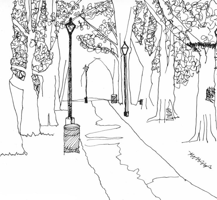 This view is from my sketchbook project 'Drawing my way round London' which I began in 2005 starting at Woolwich North and finishing in 2011 in Richmond following the route of the old North London railway line. It is available as a free-to-download ebook from my website: www.plantin.co.uk