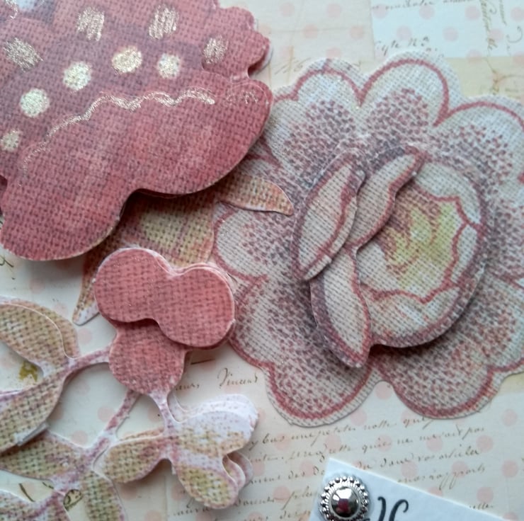 Consisting of a modern floral design decoupage mounted onto cream co ordinating paper. Then onto dusky pink card and then onto pristine white quality card.