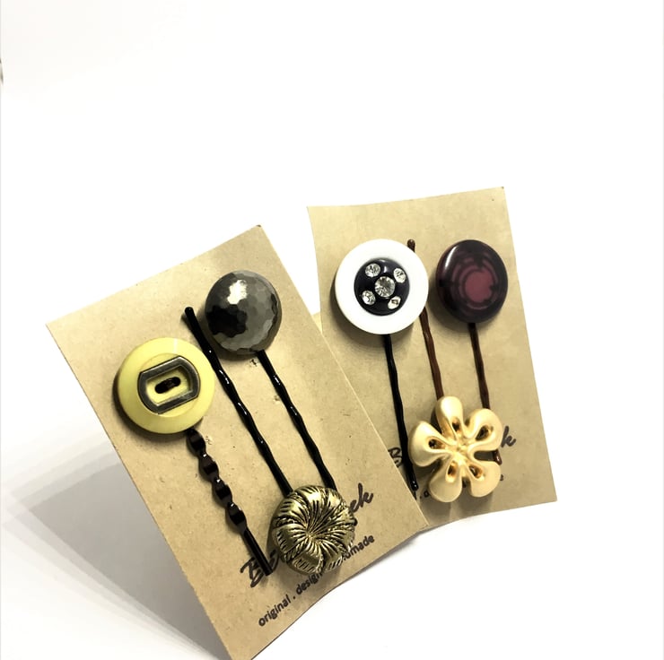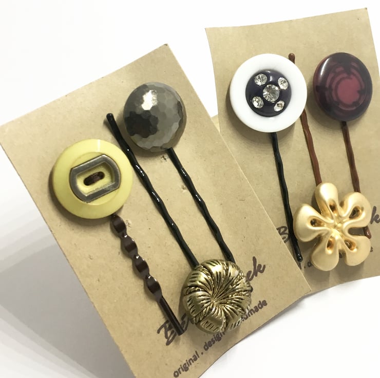 Twin Packs Of 6 . Handmade Vintage Buttons Bobby Pins