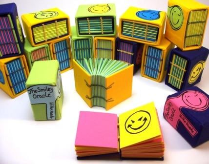 With this work I wanted to investigate the relation between the contents of a book, and how they can vary from reader to reader. The Smiley Oracle is a toy, and a book art object.