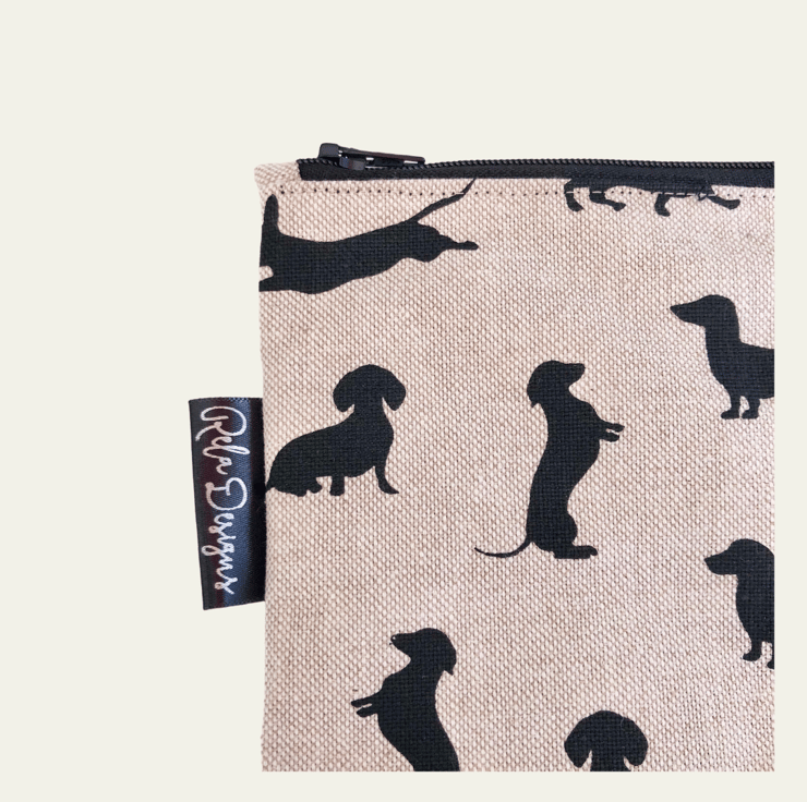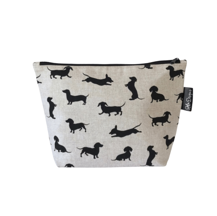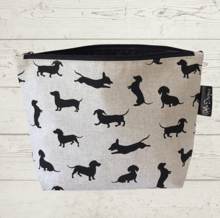 This cute dachshunds large makeup bag is lined with a black waterproof nylon, great for those inevitable spills.