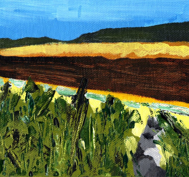 I painted this in acrylic on board after attending a wedding at Grinkle Park in north Yorkshire. This was the view from the bottom of the hotel's garden.