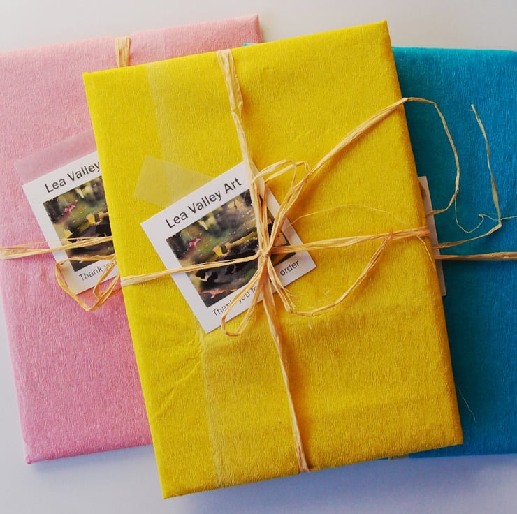 This card measures 5 x 7 inches and comes wrapped in a clear cello bag with a white envelope. It has been left blank inside for your own message.