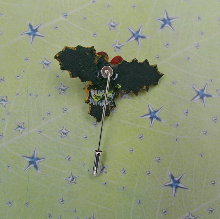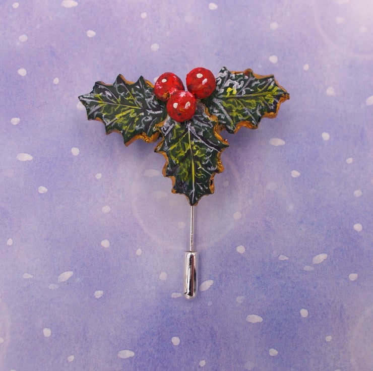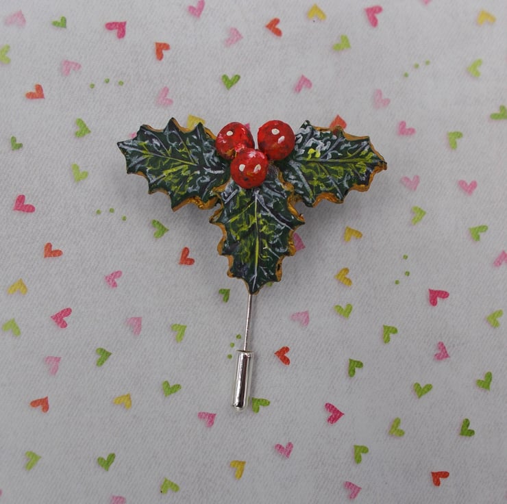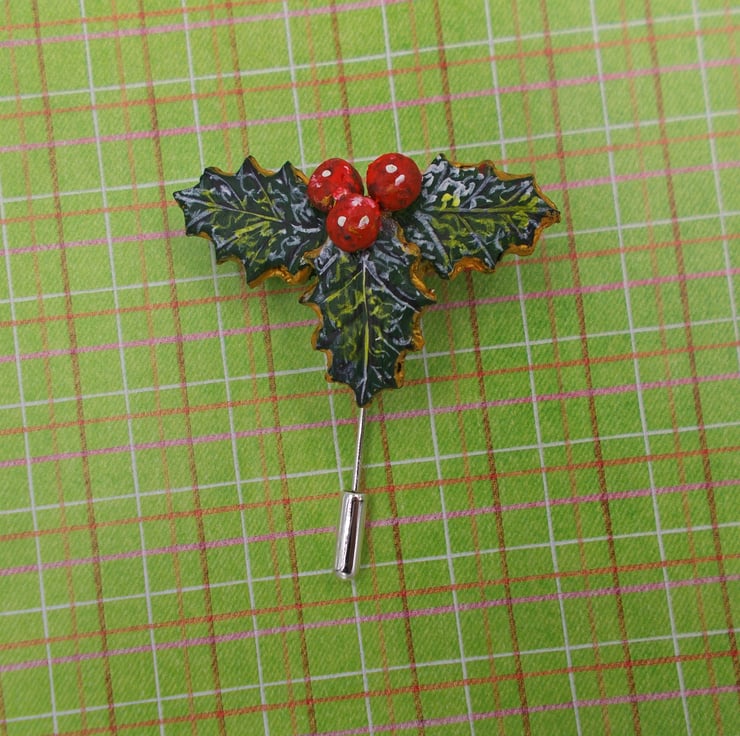 You are looking at a variation of one, of my most popular Designs- The HOLLY & BERRIES STICK PIN, Lapel Flower Pin.