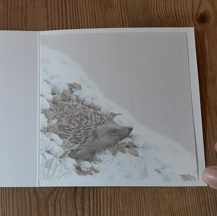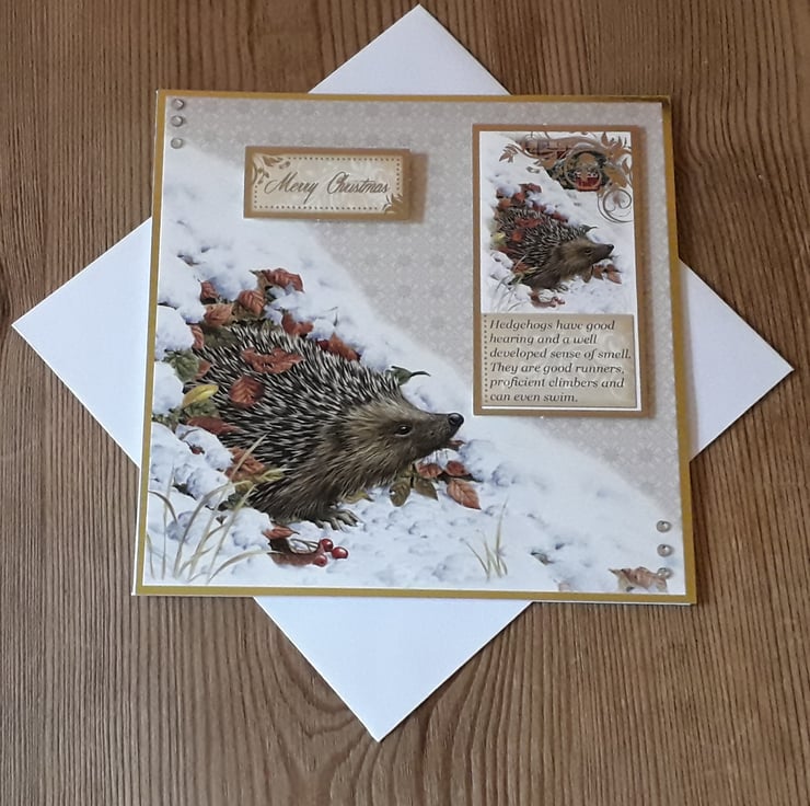 A Christmas card featuring a cute hedgehog, perfect for anyone who loves wildlife.