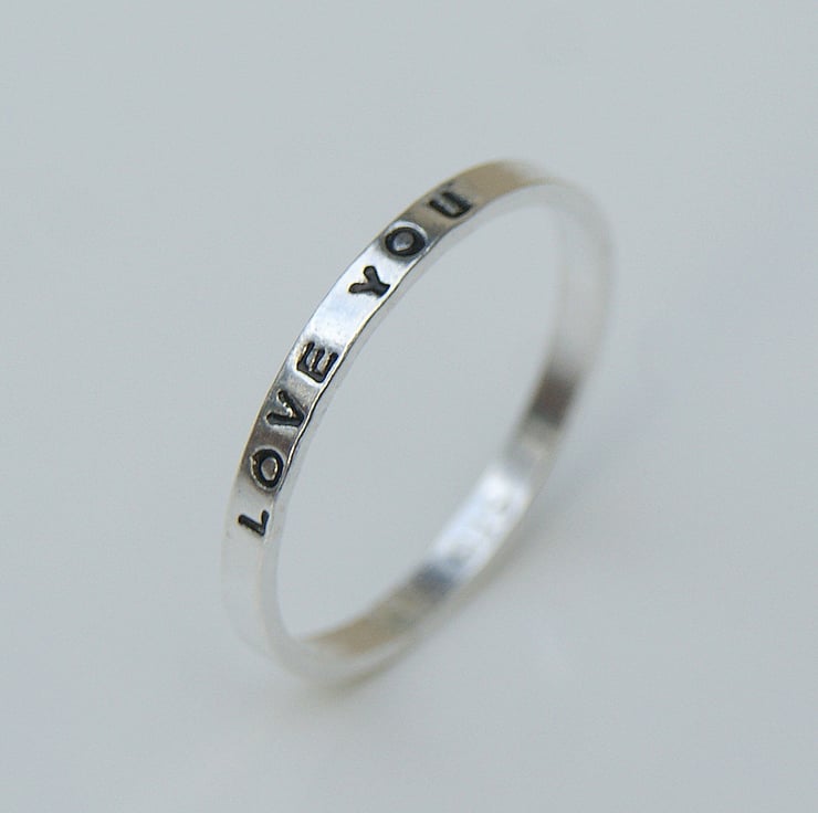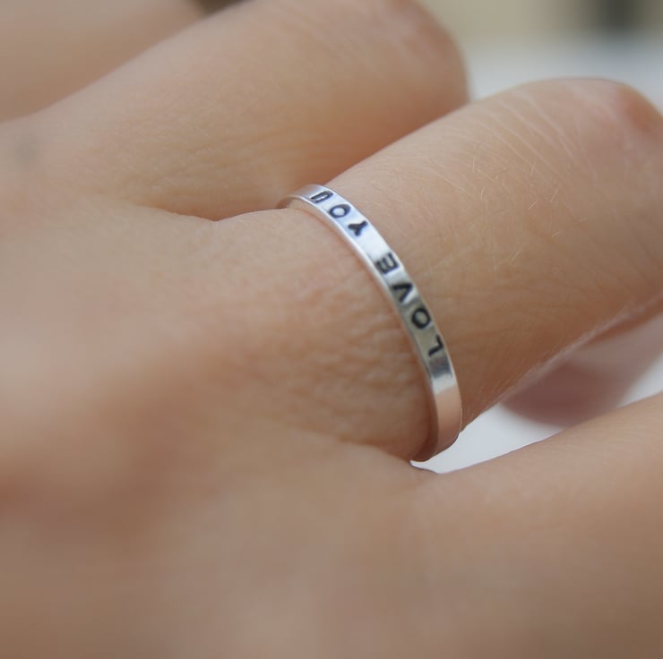 Personalised Ring, Silver stacking ring, 2mm Hand Stamped Band