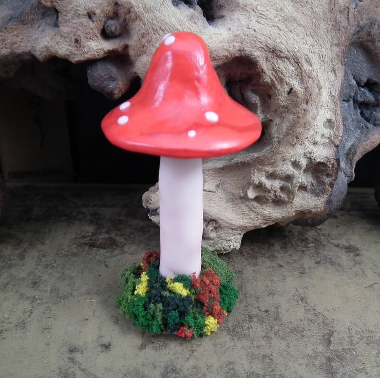 This is a 'one of a kind' creation having been entirely handmade without the use of moulds here at my studio on the Sussex Coast. Modelled with Prosculpt polymers, painted with heat set paints before sealing with lacquer. Two and a half inches high. This listing is for one toadstool, other gnomes and toadstools are available as separate listings.