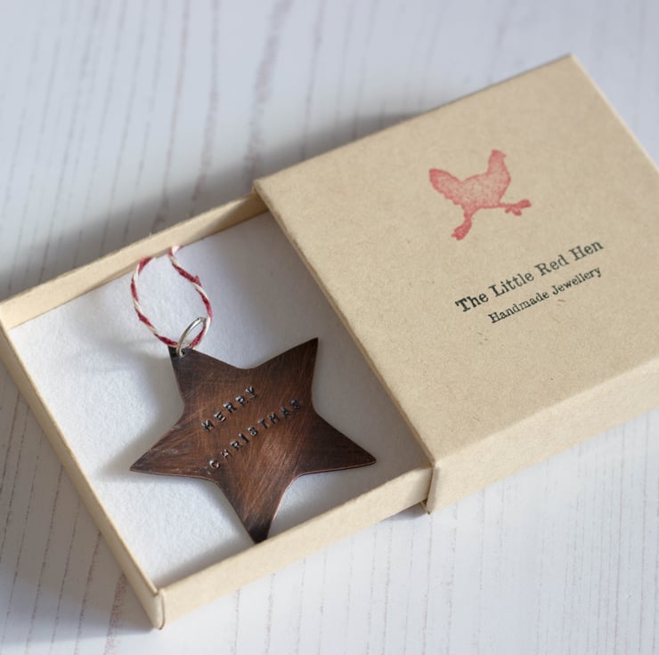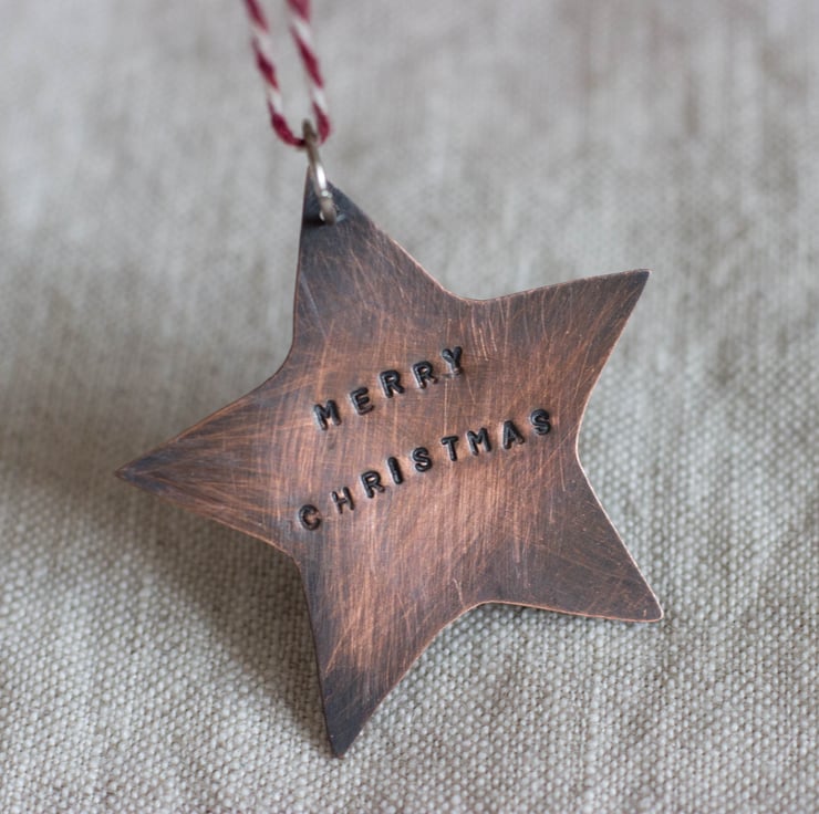 Gorgeous copper star tree decoration, stamped with 'Merry Christmas'