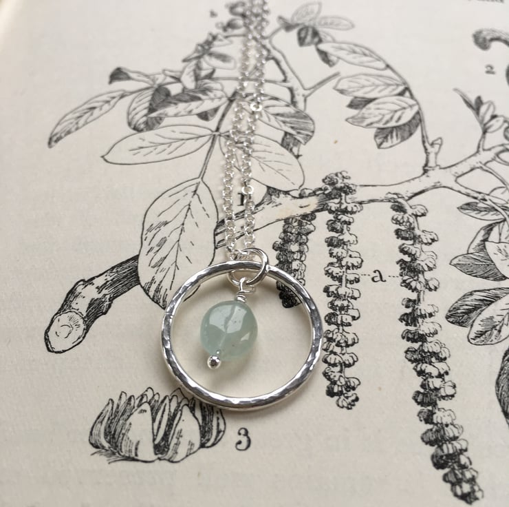 A pretty handmade sterling silver pendant featuring a beautiful little nugget of pale aquamarine.