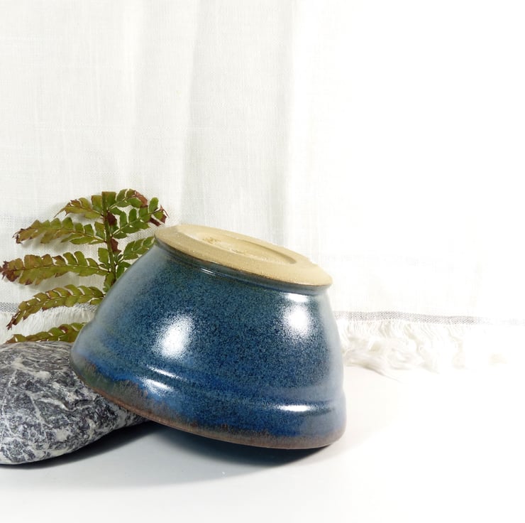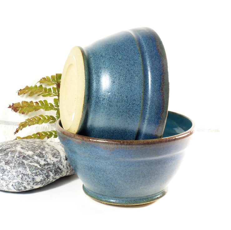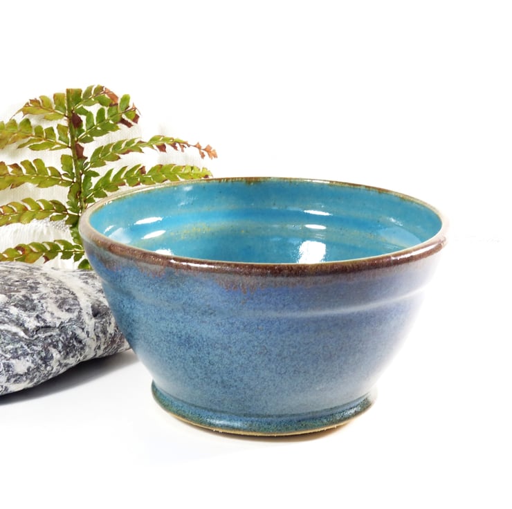 I threw this bowls on the potters wheel using a strong stoneware clay. I turned the base to make a foot ring when it was leather hard. It was then fired to a bisque before being glazed in three contrasting and complimentary glazes and refired to 1220C.