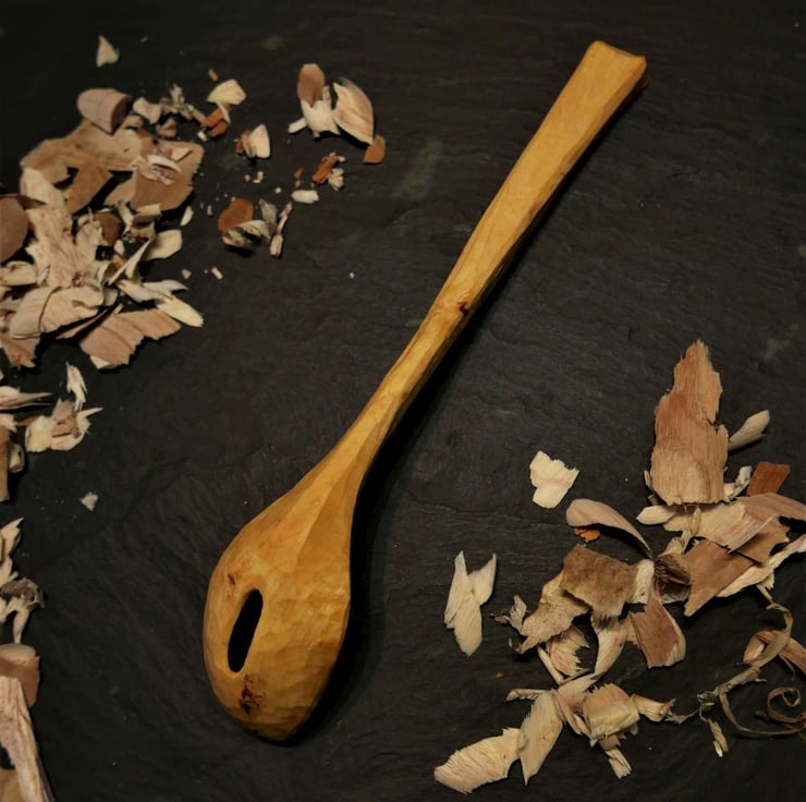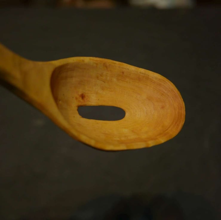 A nice sycamore crook was the ideal shape for getting into those small pans so a straining scoop it became!