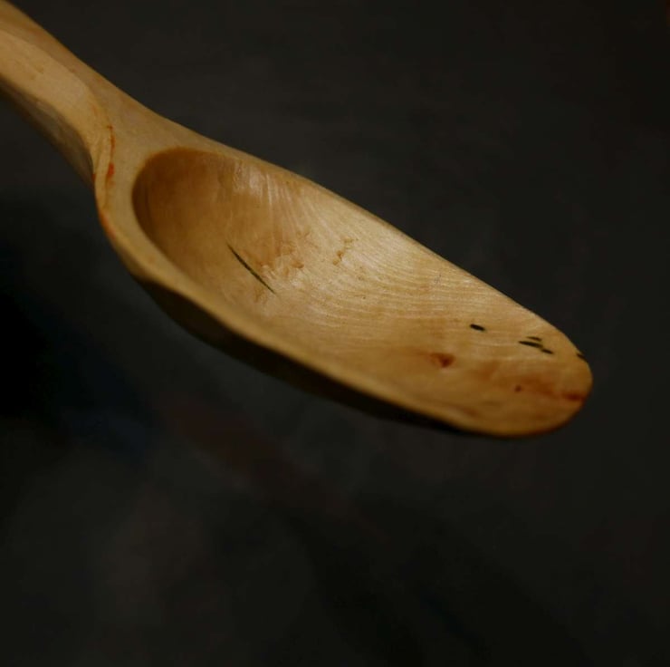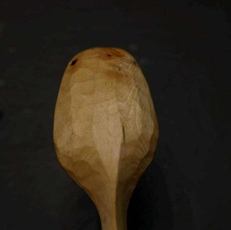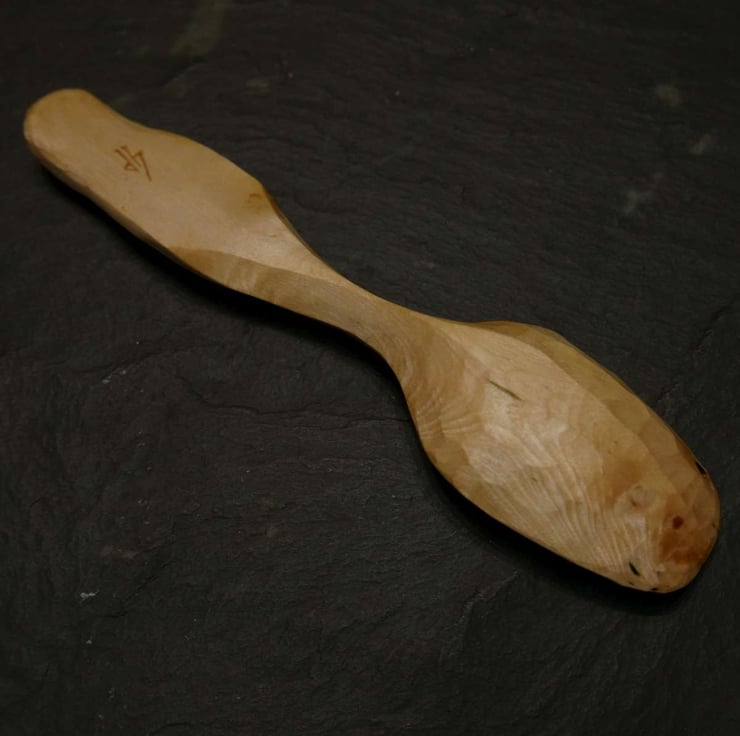 A serving or large eating spoon spoon handcarved from Welsh sycamore wood in the traditional way.