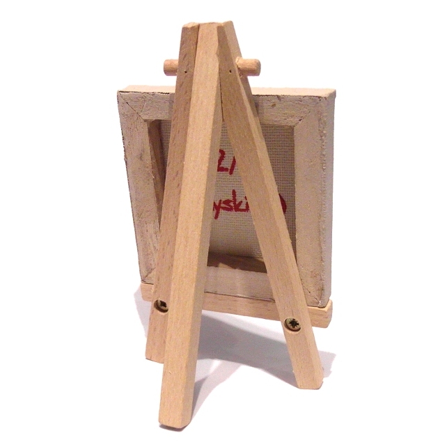The hen and chick canvas will either come with a 12cm (4.7") wooden easel for display, or will be strung with a ribbon in a colour that matches the painting so it can be hung on a wall (as in picture 5). Just choose with easel or ribbon hanging when you buy.