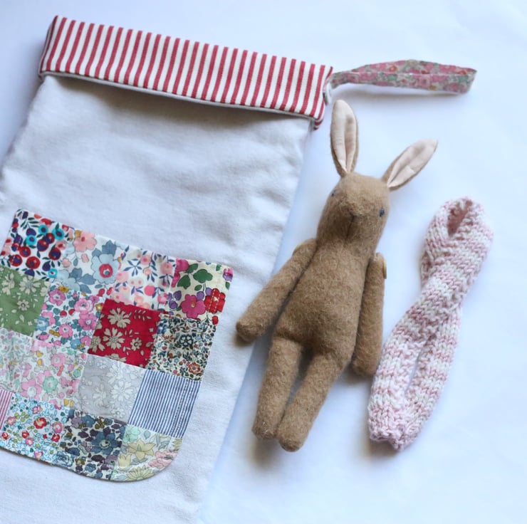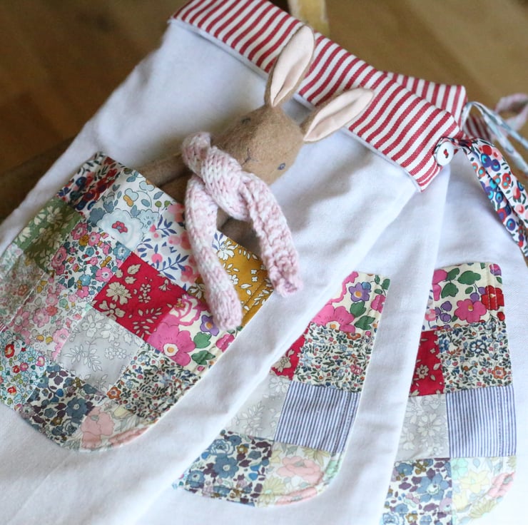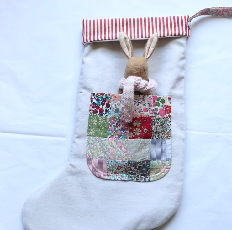 Each stocking has a handmade patchwork pocket made from a selection of beautiful Liberty of London tana lawn prints.