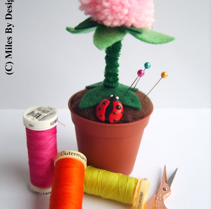 The ladybird is handmade from polymer clay.