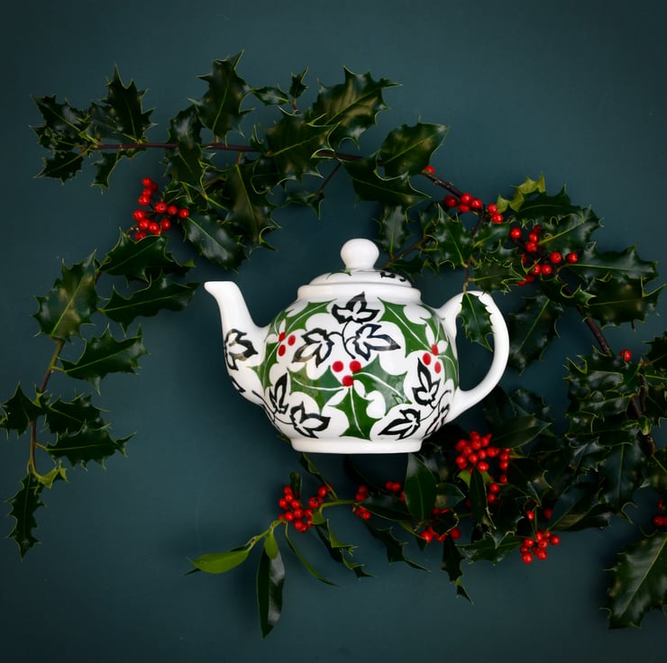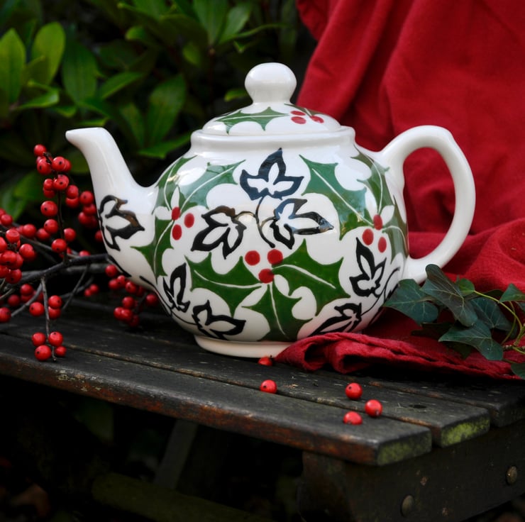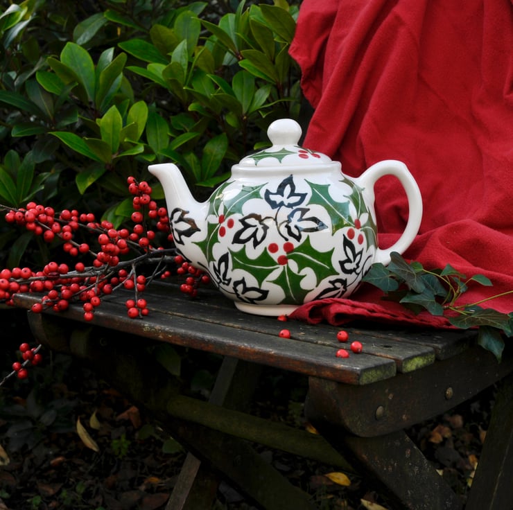Christmas Holly and Ivy teapot wonderful for tea around the Christmas tree.