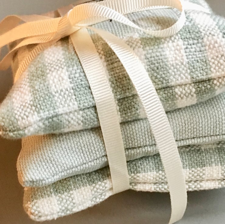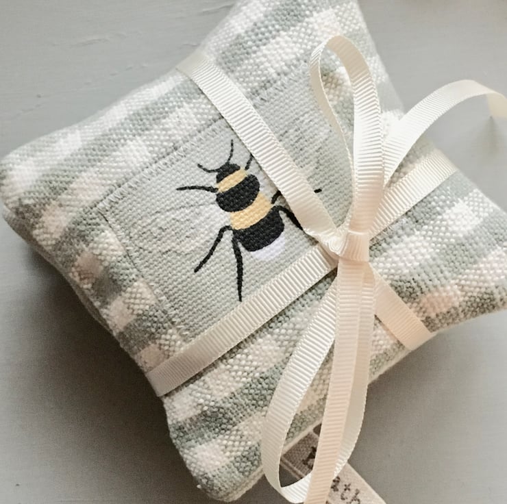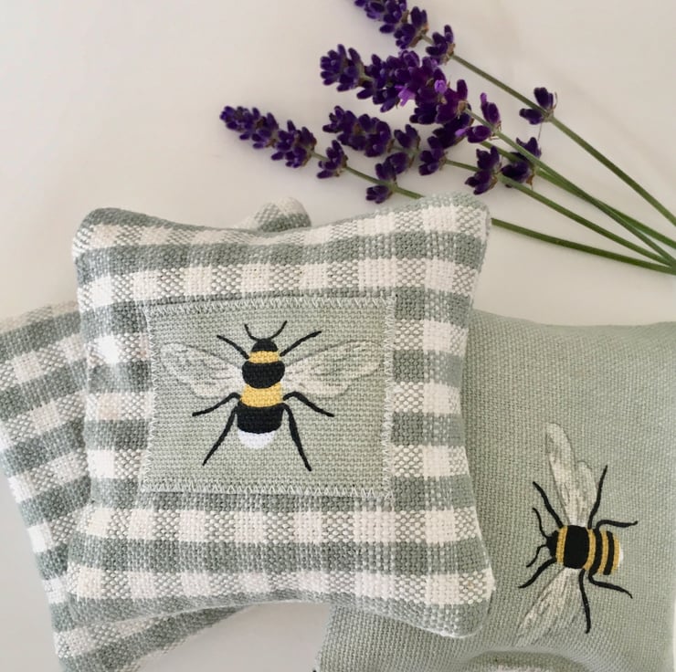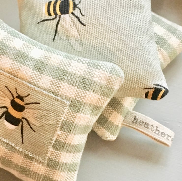 Bees and pale sage-green gingham marry together in this bundle of sachets, each plumply filled with locally grown and beautifully fragrant Hampshire lavender, and all tied up together with ribbon.