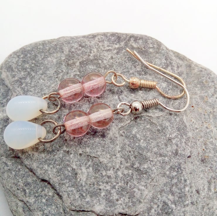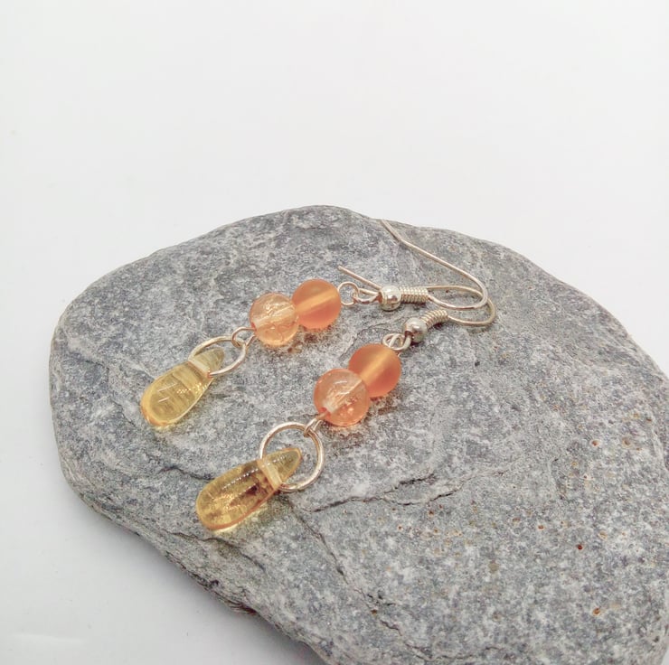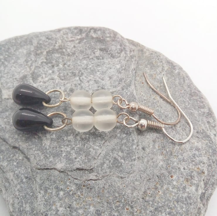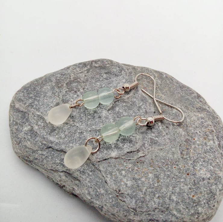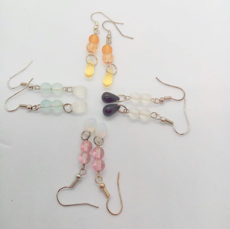 The earrings are made using a glass drop bead and two small glass beads on silver plated ear wires. They have a drop of 3 cm. There is a choice of colours for the earrings, these are: