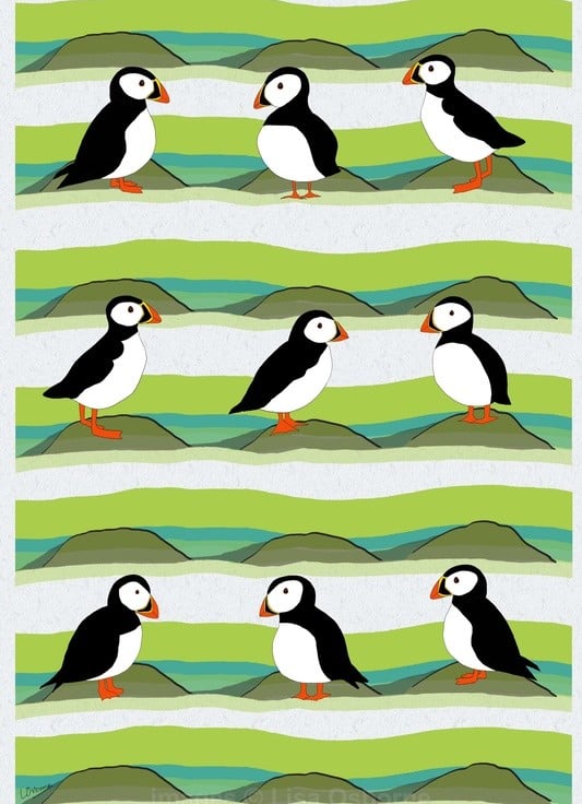 Puffins - The print is a high quality, open edition print from one of my digital illustrations of puffins