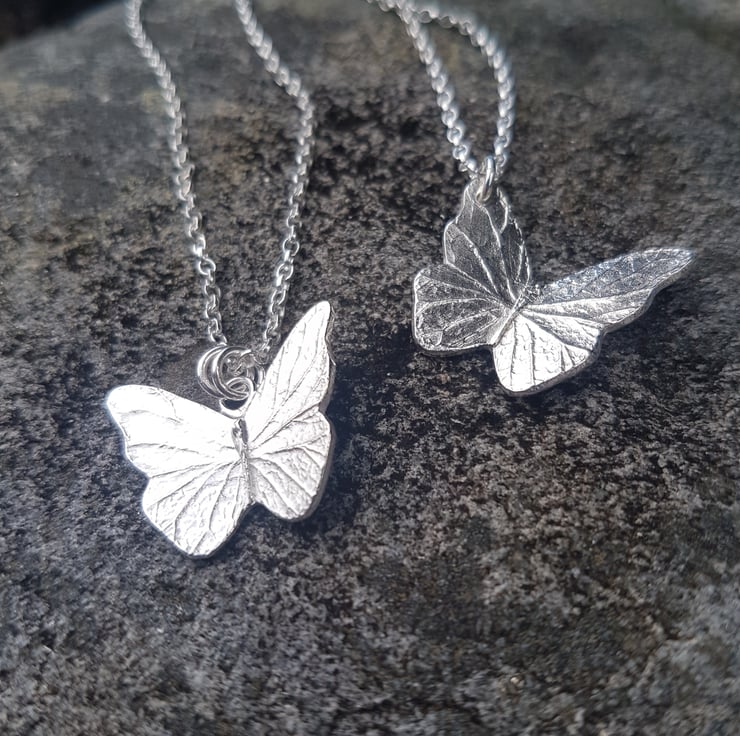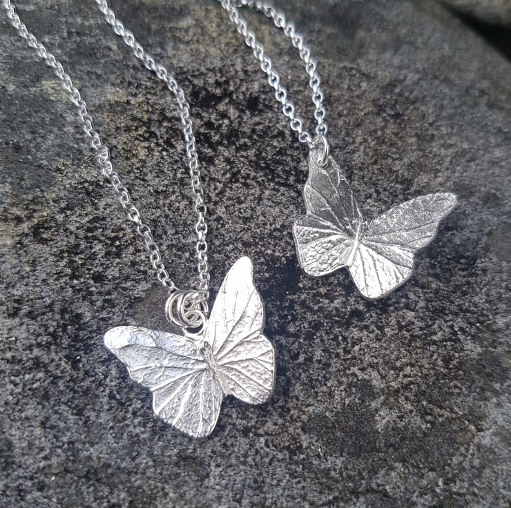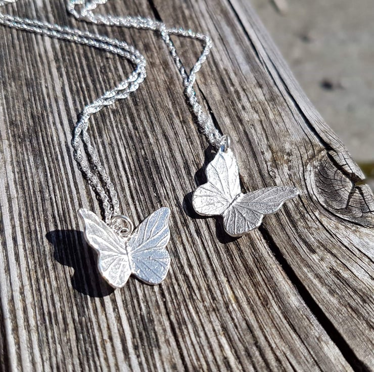This pretty necklace has a fine silver butterfly that hangs from a 18 inch sterling silver chain.
