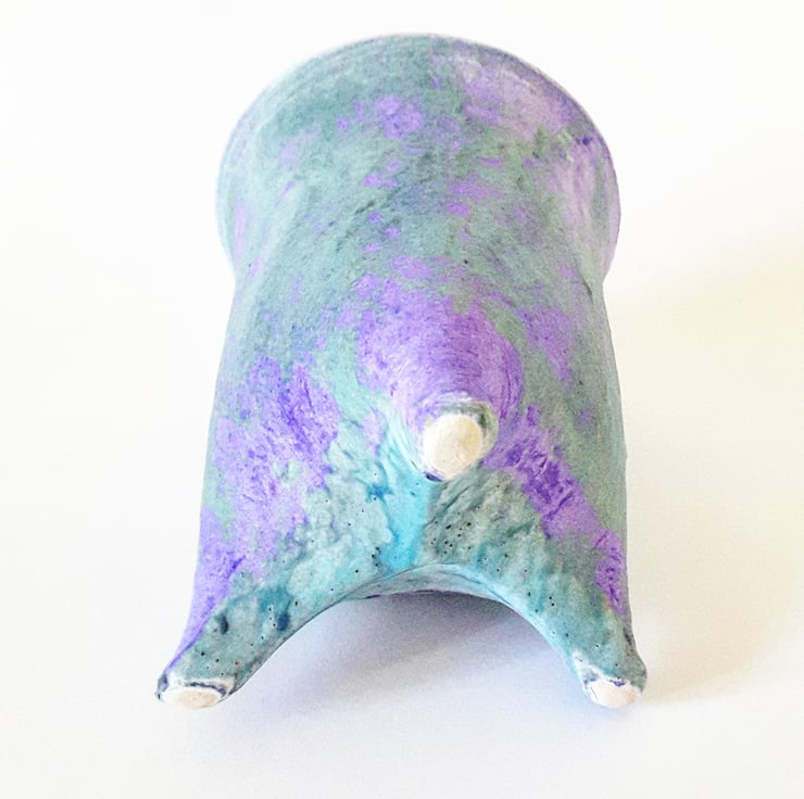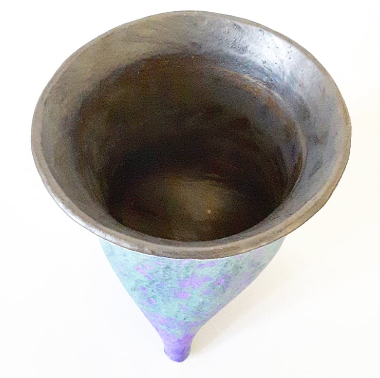 Made from stoneware clay and fired to a high temperature then glazed with blue, mauve and bronze glazes which I have handmade from raw ingredients in my own garden studio.
