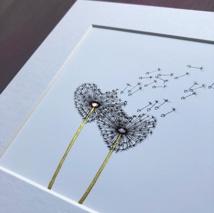 An ice white mounted print of my original artwork, 'Love Wish'.