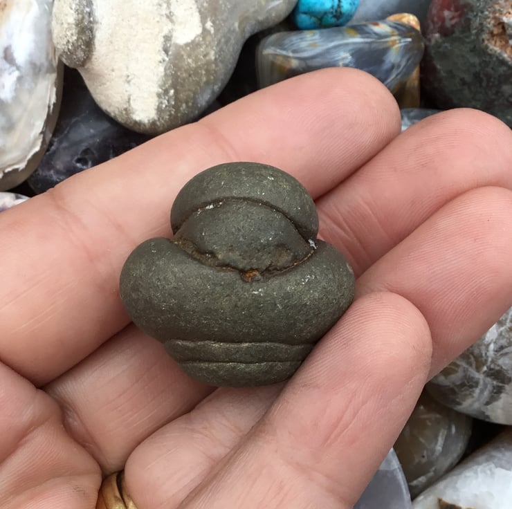 Coprolite is fossilised organic matter, or not to put to finer word on it, poo/ faeces. Coprolites are classified as trace fossils as opposed to body fossils, as they give evidence for the animal's behaviour (in this case, diet) and now found abundantly as fossils in special locations such as the Jurassic coast in Dorset. I found this in the same place as I was finding fossil ammonites which are 150 million years old at Charmouth Beach.