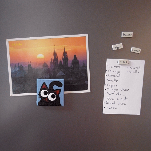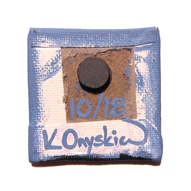 This little original artwork is painted in acrylics on a 5cm x 5cm (2" x 2") canvas board, and has been coated with a layer of clear varnish to make it more durable. A 12mm magnet is attached to the back so this little painting can stick on a fridge or other magnetic surface.