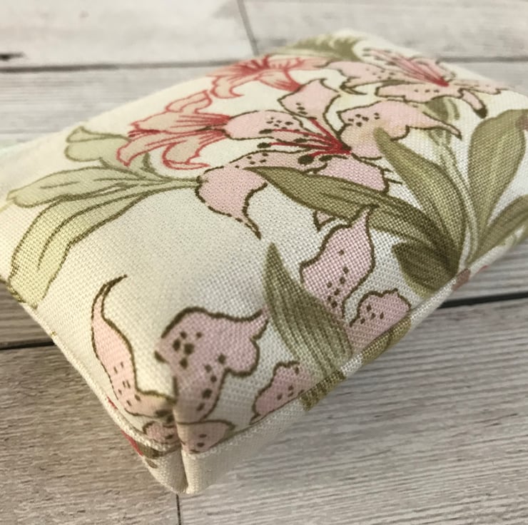 This handy little floral coin purse will fit into the smallest of handbags but is just large enough to hold cash and a bank card and would also hold a lipstick. With its pretty print pattern, it would make a lovely small gift, particularly for anyone who loves flowers and particularly lilies.