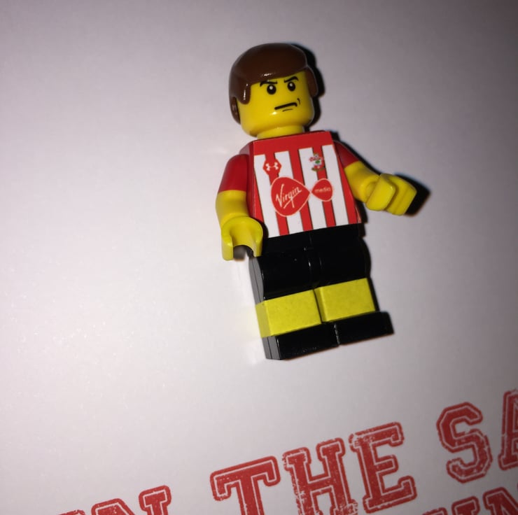 Our little mini footballers look great, and are a fab way to show your love for a particular team. This particular item is our tribute to Southampton Football Club. This little guy is wearing the latest strip and his torso has been created with a custom sticker front. Under the minifigure we have printed the classic words "When the Saints go marching in" to make a truly unique and awesome piece of art work.
