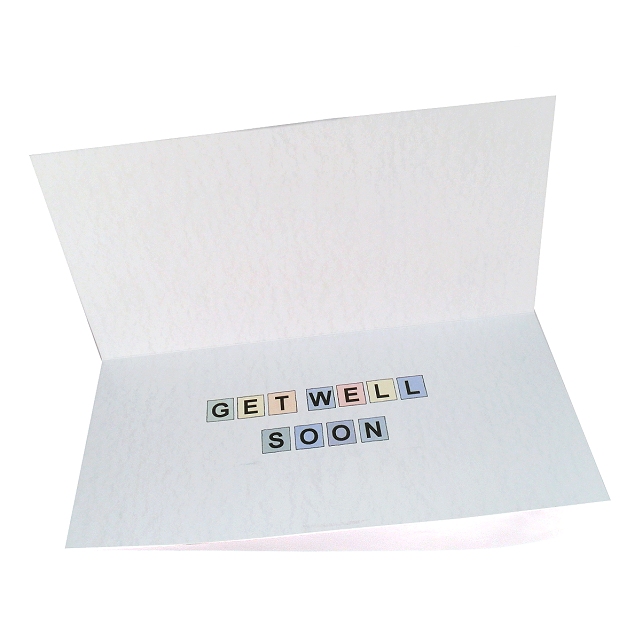 Inside the card there are boxes in matching colours to the front with "get well soon" written.