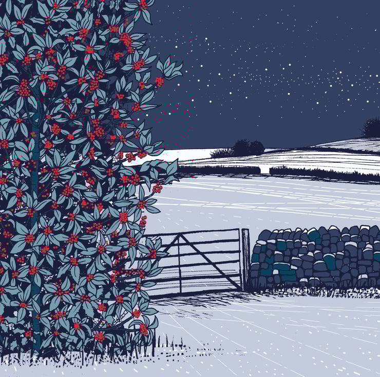 A set of four festive cards inspired by the countryside of Derbyshire. They are A5 size and digitally printed on 350g recycled card. They are all blank for your own message. They are tent fold, come with plain white envelopes. Please note that they are not supplied in cellophane - I'm reducing my use of plastics!