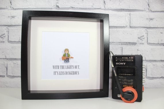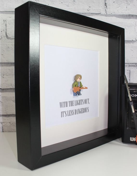 It is the music world that brings us to our latest creation... Ladies and gentlemen please give a warm welcome to our tribute to the Nirvana front man - Mr Kurt Cobain. This awesome custom minifigure has been mounted in to a deep box frame and comes complete with the classic lyrics "With the lights out, its less dangerous."