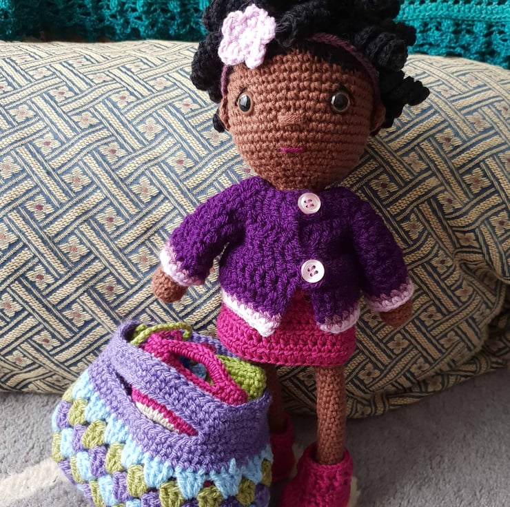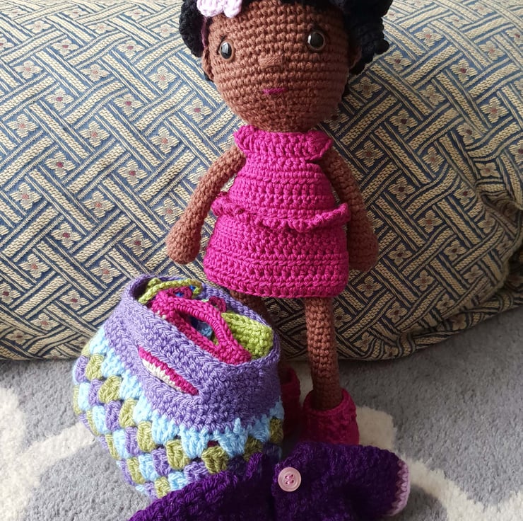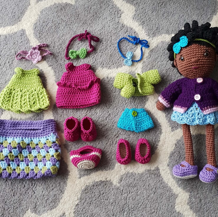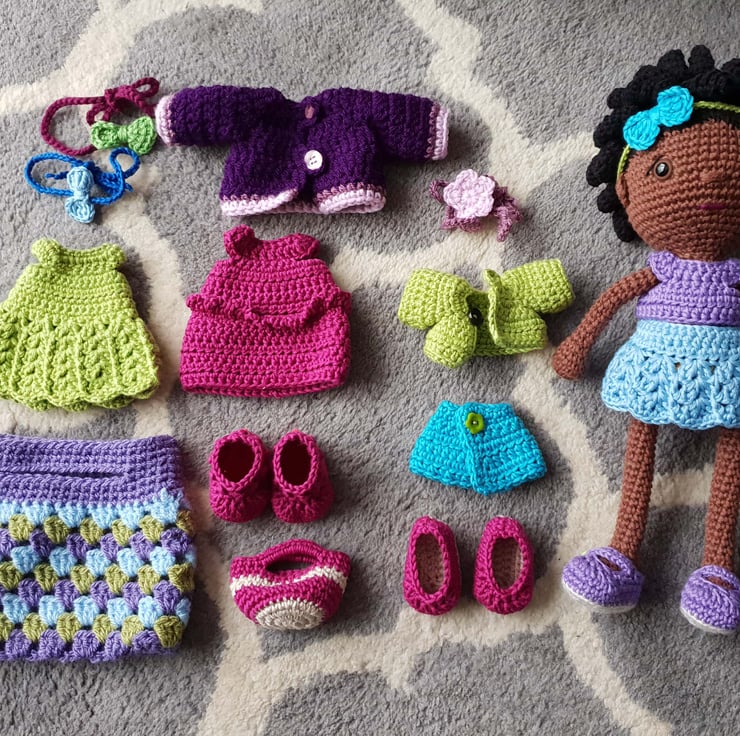 My inspiration was a fantastic pattern by Kristi Tullus: https://www.ravelry.com/patterns/library/doll-in-a-dress. I then designed some extra clothes and shoes to go with her!