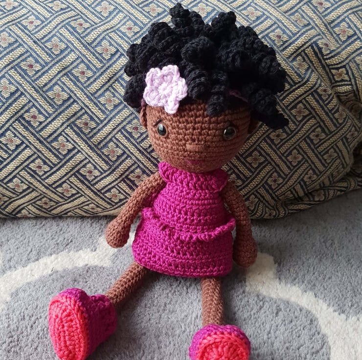 This loveable crochet doll is made in 100% cotton and stuffed with polyester filling and fitted with brown safety eyes.