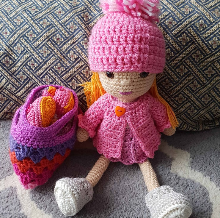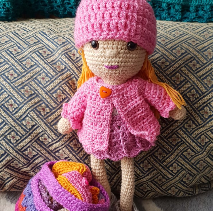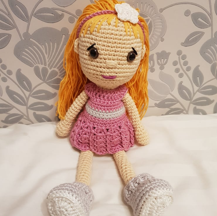 This lovely crochet doll is made in 100% cotton and stuffed with polyester filling and fitted with brown safety eyes.