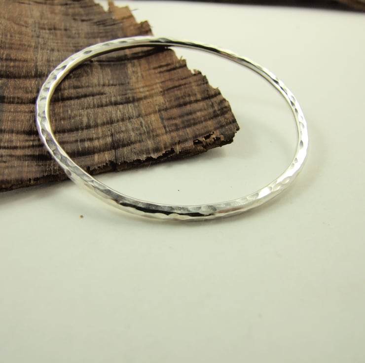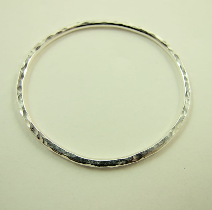 Sterling Silver Heavy Hand Forged Oval Hammered Bangle. Medium