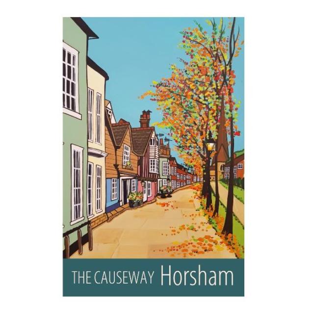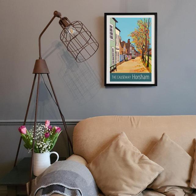 A beautiful A3 print of an Autumnal view of the historic Causeway in Horsham, West Sussex, in a contemporary black frame.