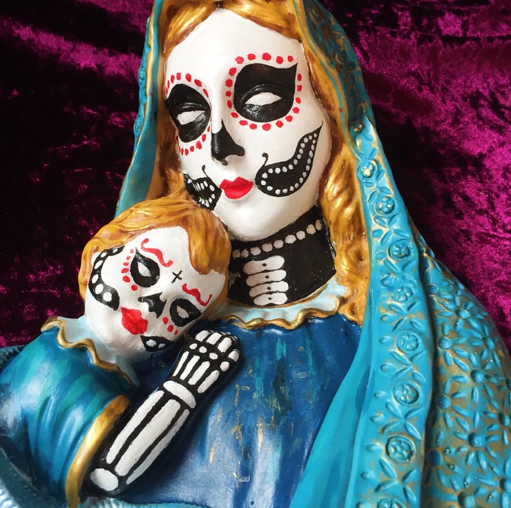 The original statue really needed some love to bring it around and seeing as it was a bust, it just called out for sugar skull style painting.