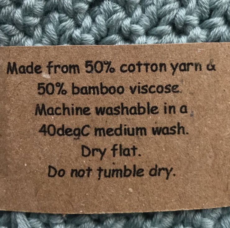 The facecloth is sent with a recycled paper wraparound band that has the materials and washing instructions on.