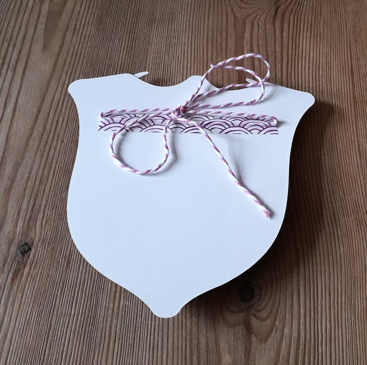 The decoration is hung with baker’s twine which is attached to the back and can be adjusted to suit the place where it is hung.