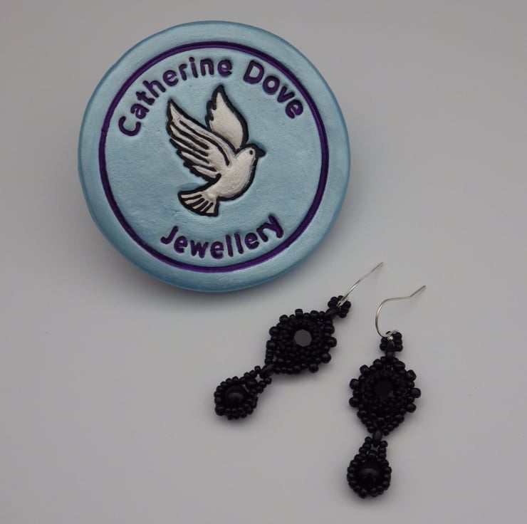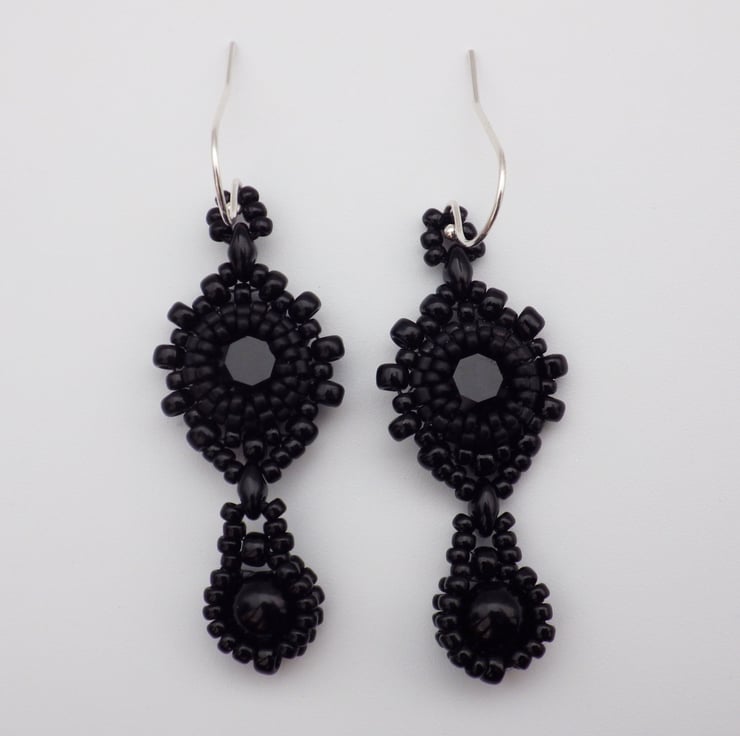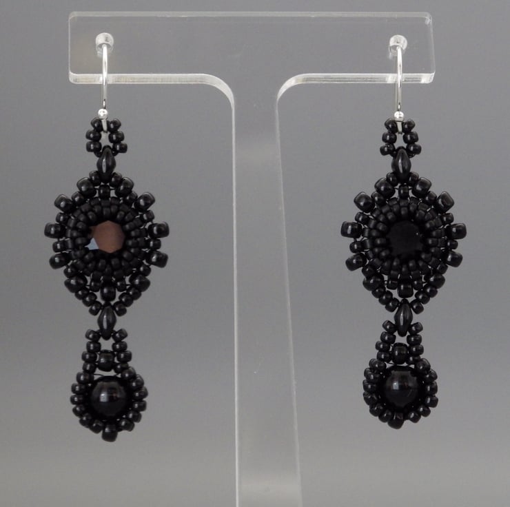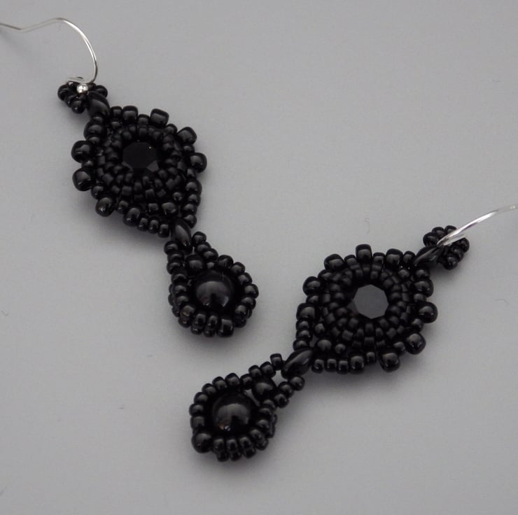 Occasionally, it’s nice just to make a simple elegant black pair of earrings and I’m particularly pleased with how these have turned out. These beadwoven earrings would make stunning eveningwear.