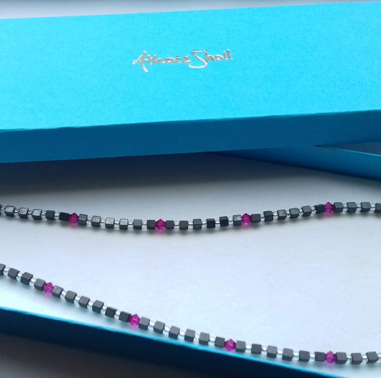 This necklace is subtle enough to be worn everyday but with a pop of bright colour.