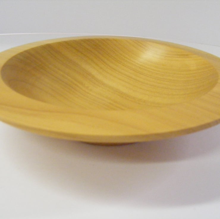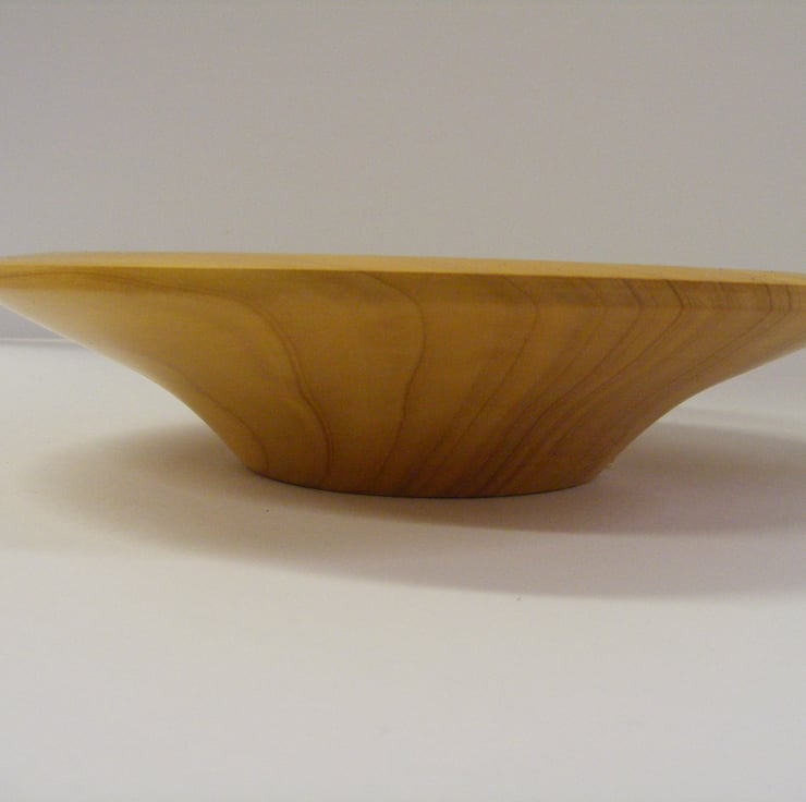 Turned to show of the wood grain this piece came out really nice the reversed curve to the outside works well.
