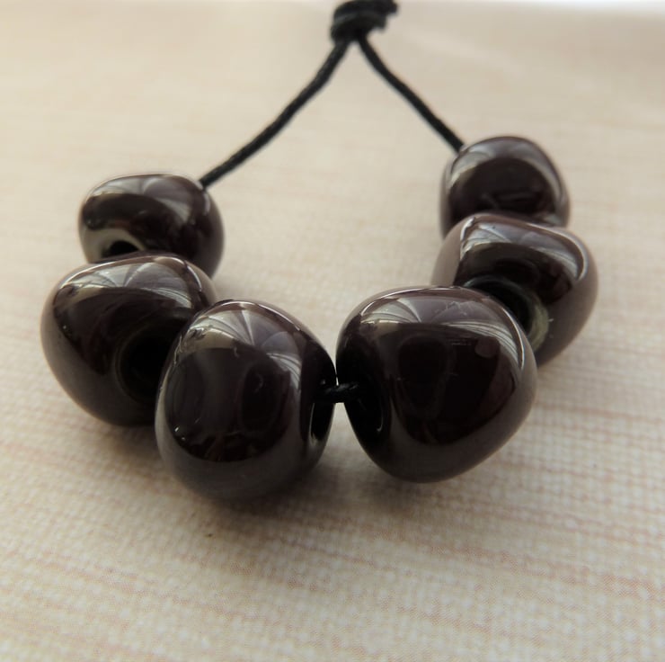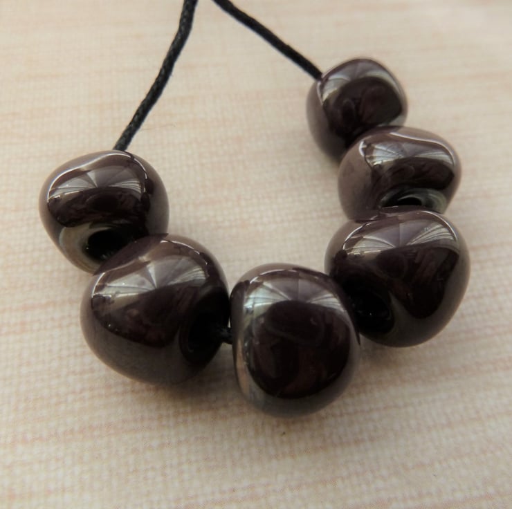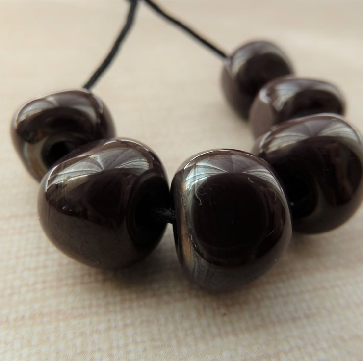 A set of 6 lampwork glass beads made with silver plum glass and hand shaped into nuggets.