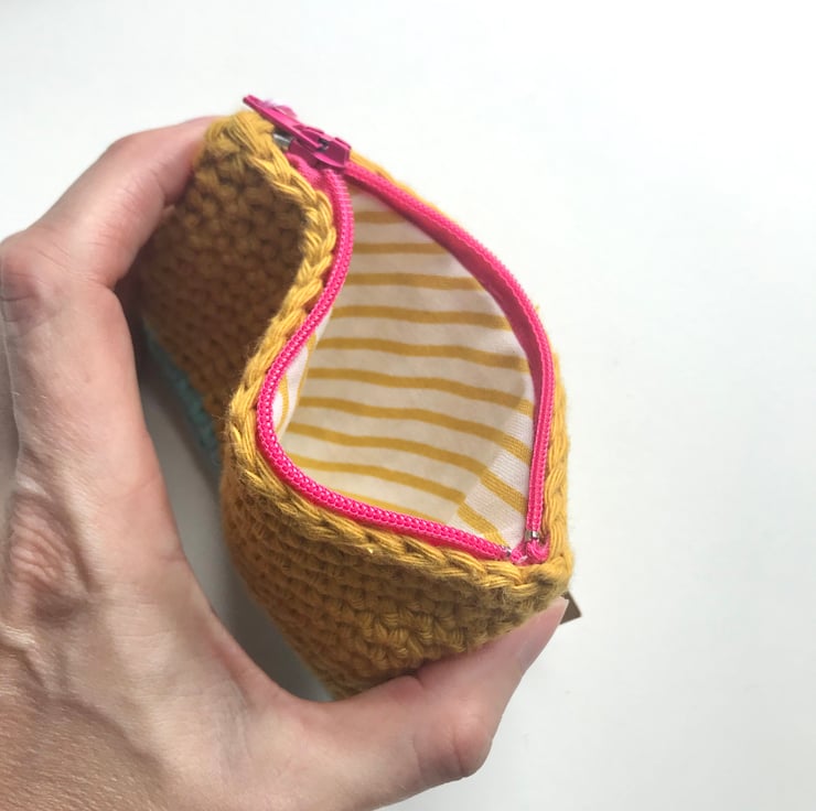 Each purse is crocheted by hand in 100% cotton. Each purse is then lined in printed cotton and a zip is sewn in.